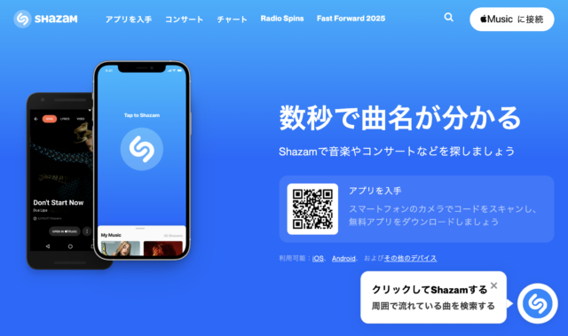 さらに、SpotifyやApple musicなどに連携してShazamした曲をプレイリストに保存してくれるので、