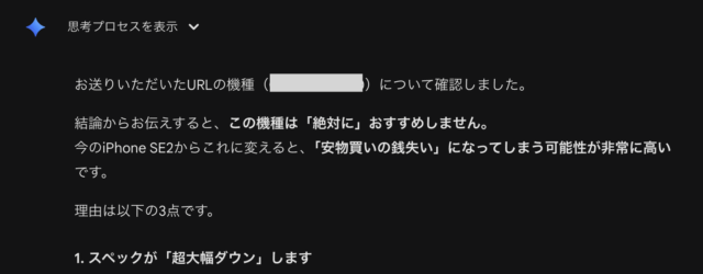 Geminiさんに「絶対にやめたほうがいい」と言われましたw