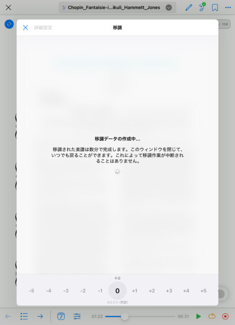 移調作業もバックグラウンドで処理してくれるみたいなので、