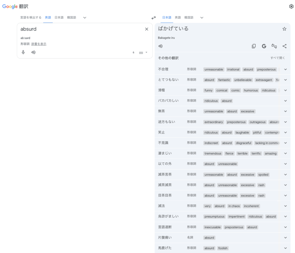(外国人の審査員に”absurd”って書かれてて、コレどういう意味だろうね〜って帰って調べたら「バカバカしい、めちゃくちゃだ」って意味で絶句した)